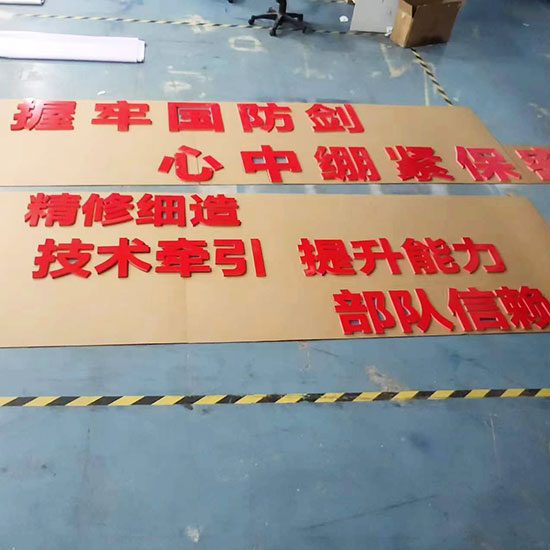青島紅色發(fā)泡板字雕刻部隊(duì)紅色口號(hào)立體字制作安裝