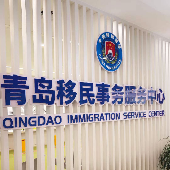 青島移民事務(wù)服務(wù)中心logo墻設(shè)計(jì)前臺(tái)形象墻制作安裝