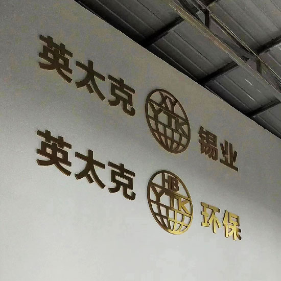 青島優(yōu)邦智造標(biāo)識(shí)制作公司為英太克環(huán)保、英太克錫業(yè)公司制作安裝鈦金字。青島英太克錫業(yè)是中國(guó)北方實(shí)力雄厚的電子釬焊料和高科技鉛制品生產(chǎn)企業(yè)之一,公司主要產(chǎn)品有:電子工業(yè)釬焊焊錫絲、焊錫條、鉛錫合金、鉛銻合金、軸承合金、電解用陰陽(yáng)極版,鉛管、鉛粒、鉛磚鉛板、鉛絲、鉛合金、鉛鑄件等等,年銷(xiāo)售額過(guò)億元。公司產(chǎn)品已廣泛應(yīng)用于航空航天、電子通訊、家電化工、電解電鍍、汽車(chē)制造、防腐蝕、防輻射等多個(gè)行業(yè)。各類(lèi)產(chǎn)品遠(yuǎn)銷(xiāo)歐美日韓等幾十個(gè)國(guó)家和地區(qū)。
